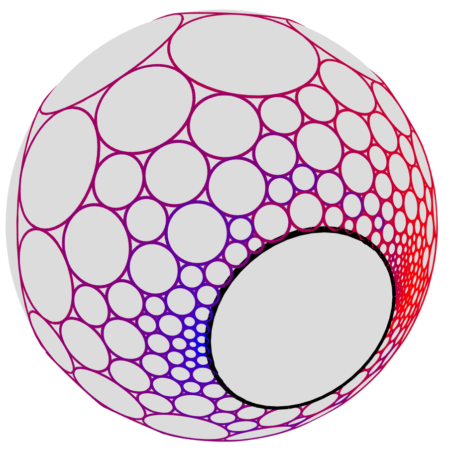 - Part II: Generating a random circle packing in koebepy. (Coming soon.) Here we show how to use koebepy to generate your own random circle packings like those visualized here in Part I.