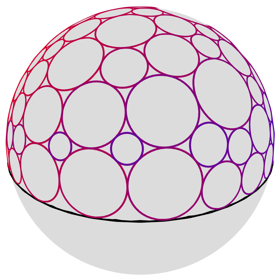 That’s enough background for circle packing ornaments. In Part II we will use koebepy to generate random circle packings and in Parti III we’ll turn them into printable models. Stay tuned.